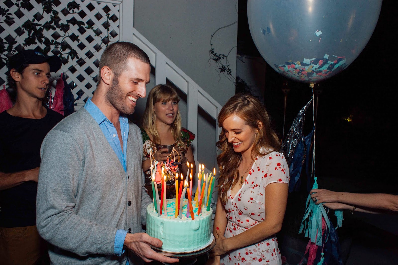 All work and no play has me wound a little too tight these days.  Hosting my dear friend Ahna O'Reilly's birthday party was a great chance to let my hair down, have a few (too many) drinks and hang with close friends.  I wanted the night to feel festive so balloons and confetti fit the bill.  When Greg asked me the plan, I informed him we were doing "balloons, pizza and ice cream."  He thought it sounded like a little kids birthday and thought a face painter sounded in theme.  While I didn't go that far, a youthful spirit was the goal.  In an effort to keep things simple, we had a brick oven pizza truck at the house so guests could select their toppings and have personal pies - super fun and who doesn't love pizza?  I made a couple of easy salads and let guests help themselves to drinks.  For dessert, Sweet Rose Creamery set up an ice cream sundae bar with amazing flavors: mint chip, carrot cake, cookies and cream & creme fraiche with elderberry, all delicious.  I paid for my evening of fun the next morning, but we all need those moments to let loose!!